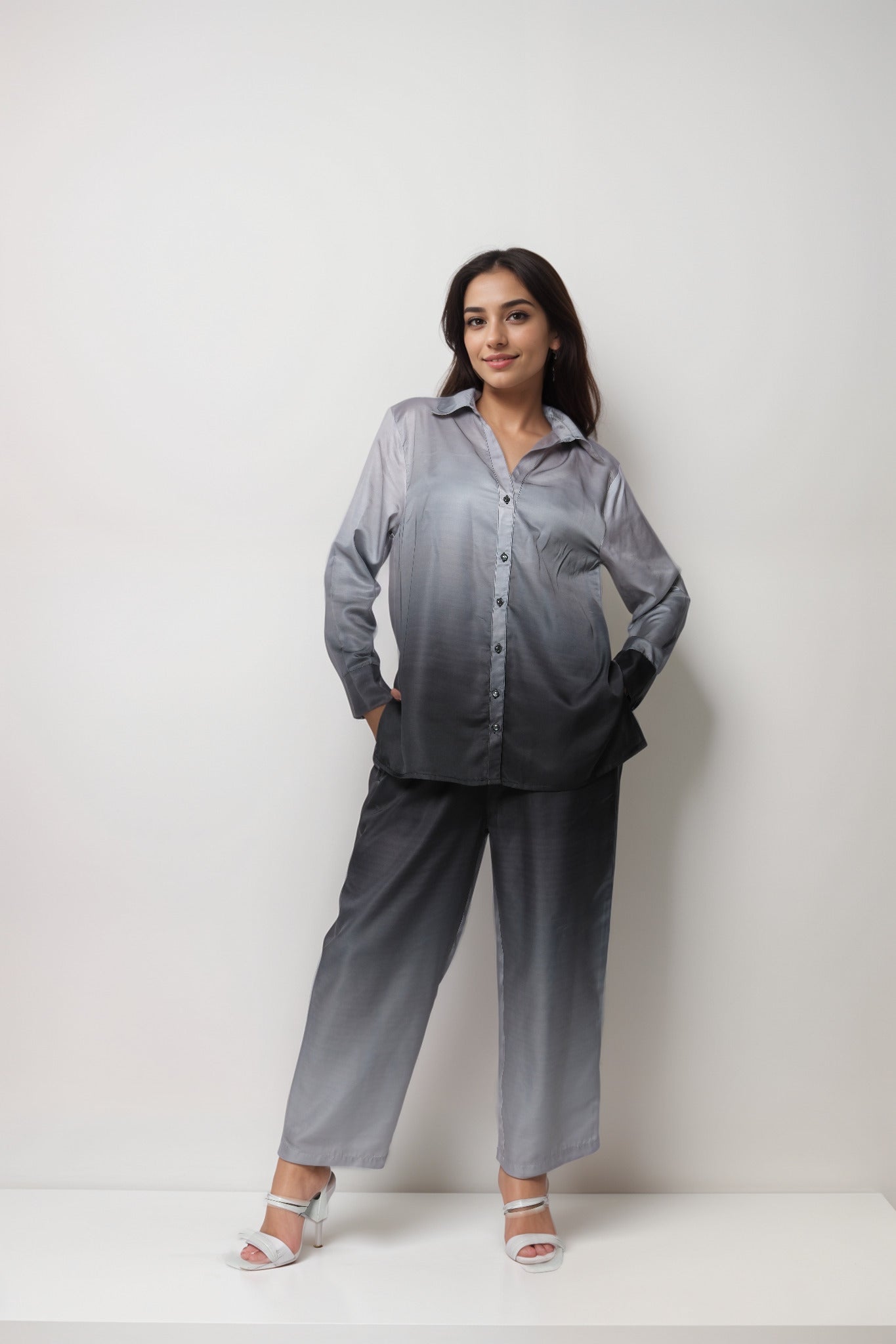 Noir Elegance Satin Solid Co-ord Set